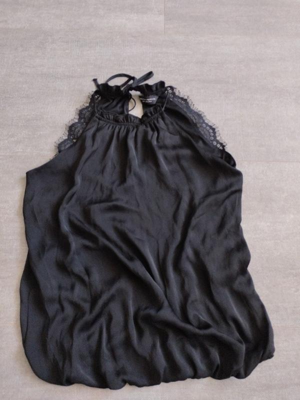 Завязужться за шию. Прикрашена кружевом. Шовк з атласом. Внизу на легенькій резинці. ПОГ 48см. Довжина 57см