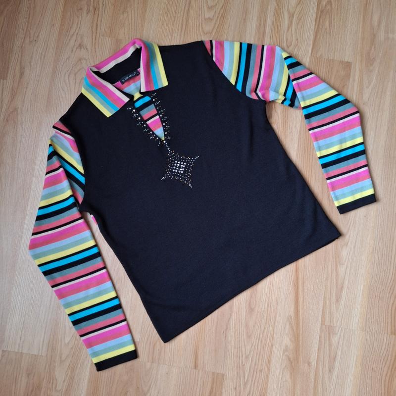 Яркий, мягкий, теплый свитерик в рубчик, красиво тянется, без растяжки за иры, длина по середине спинки 55 см, плечи 39 см, подмышки 51 см, низ 45 см, рукав 59 см, вырез декольте 12 см, декор весь на месте. Юбку отдам за 50 грн.