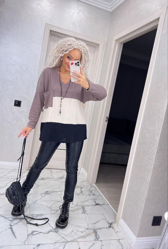 ❤️Стильна кофтинка Модель: 101 ✔️Розмір: 48-52, 54-58, 60-64 🍀Ціна: 730 грн ⭐️Тканина: трикотаж високої якості ✨Колір: сірий, мокко Кофтинка вироблена з якісного трикотажу, приємного до тіла. Модель вільного крою, рукав реглан. Пройма широка, добре підійде на повну ручку. Гарне поєднання кольорів. 💕Виміри⤵️: ⚪️48-52, ОГ 120 см, ОС 120 см Рукав реглан. Довжина виробу 68 см ⚪️54-58, ОГ 130 см, ОС 130 см. Рукав реглан. Довжина виробу 70 см ⚪️60-64, ОГ 140 см, ОС 140 см Рукав реглан. Довжина виробу 74 см рин1356
