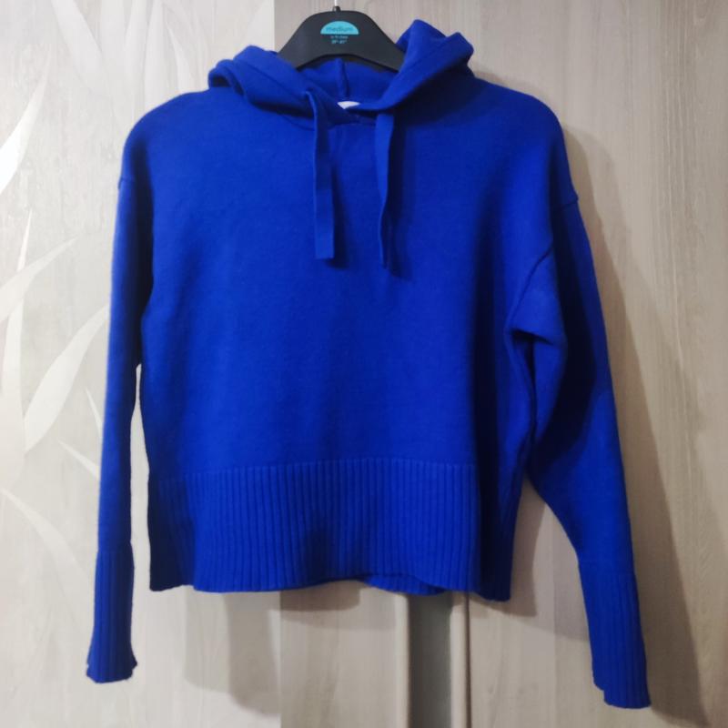Primark синій светр з капюшоном Ультро синій светр, укорочений, трохи не дістає до пояса. Рукав довгий, можна підвернути Розмір XS,S Віскоза + поліестер У відмінному стані як новий