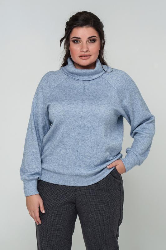 Ангоровий светр кайлі з коміром хомут під шию великих розмірів 52, 62 блакитний