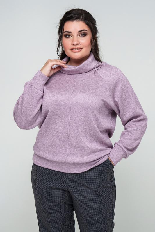Ангоровий светр кайлі з коміром хомут під шию великих розмірів 60-62 бузковий