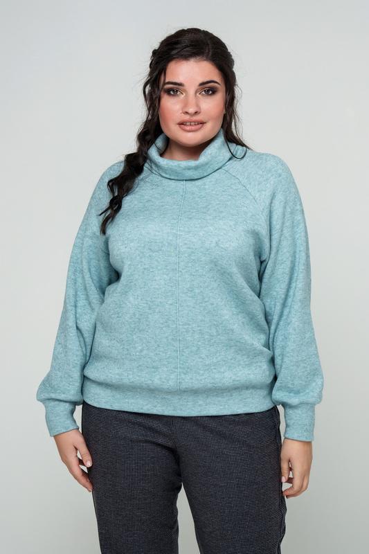 Ангоровий светр кайлі з коміром хомут під шию великих розмірів 52-62 морська хвиля