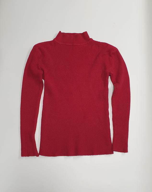Теплий светр червоного кольору , сідає приталено . Тканина приємна на дотик , тягнеться . Має невеличкий воротник , не закочується . Базова річ у Вашому гардеробі , підійде на осінь та зиму