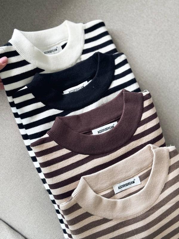 Теплая модель в полоску, спинка удлинена, разрезы по бокам Модель: 9880-1553 Состав: машинная вязка 70% cotton, 25% viscoea, 5% elastna Размер: универсальный (42-46) Длина изделия 61/66 см Длина рукава 69 см Ширина под подмышками 54 см