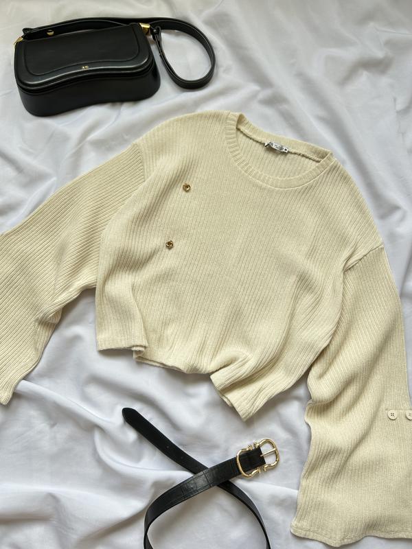 Укорочений светр із об’ємними рукавами