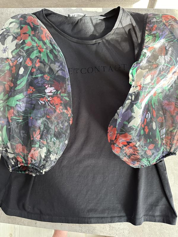 Жіноча кофтинка з рукавами з органзи! Фірма ZARA! Оригінал!В ідеальному стані. Довжина виробу 55 см, обхват груді 92 см.