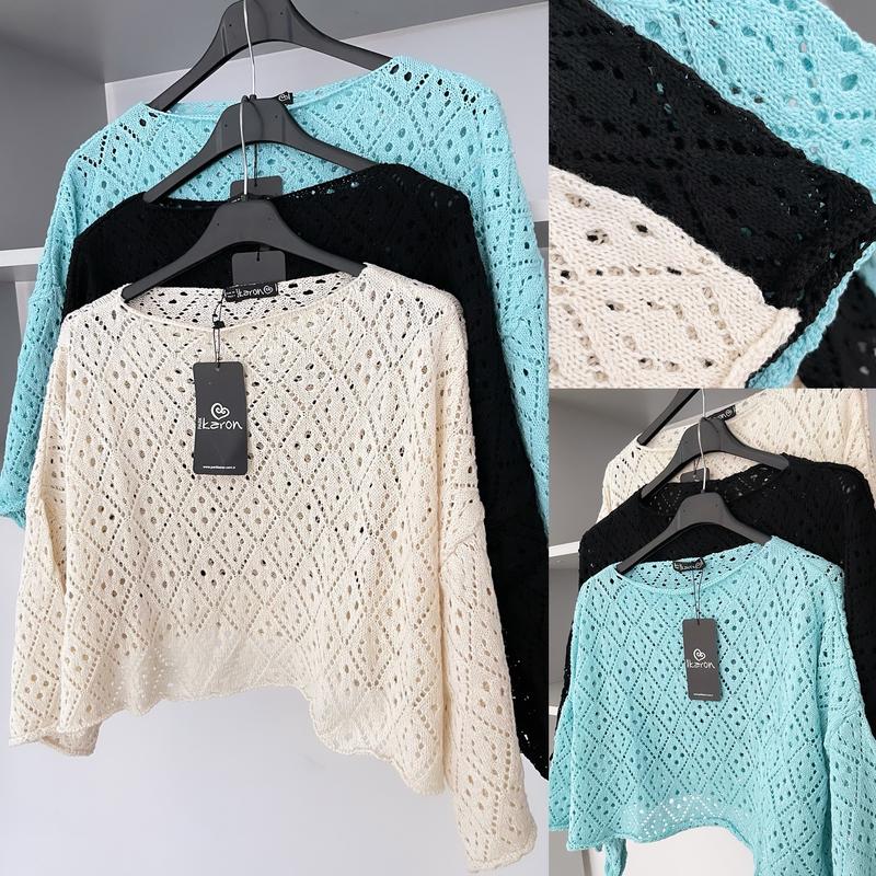 Акція‼️‼️‼️Ціна 280грн🔥🔥🔥 Класні укорочені кофточки оверсайз В трьох кольорах : айворі, блакитний, чорний 🤍🩵🖤 Виробник Туреччина, Класна якість👌👌👌 Розмір універсальний Пог 58, довжина 38см. Коштували дорого.