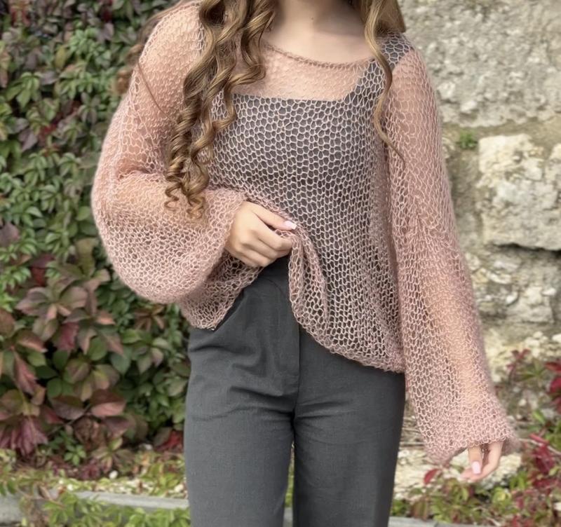 Пухнастий невагомий оверсайз светр павутинка пудрового кольору ручної роботи. Светр павутинка ідеальний варіант на всі сезони: і для літніх вечорів, і для прохолодної погоди. Приємний до тіла, не колеться. Розмір оверсайз, на S-L. Oversize Виготовлення до 1 тижня. Доступні кольори до замовлення : пудра та світло сірий. Колір можна обрати за власними побажаннями. Догляд: лише ручне прання у ледь теплій воді м'яким засобом( шампунь, гель для душу), не викручувати, а вижимати воду, сушити в горизонтальному положенні.