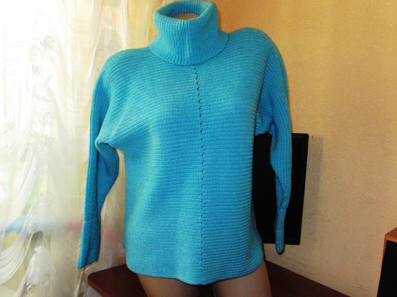 Свитер нежно голубого цвета, очень мягкий и приятный наощупь. Длина свитера 54, длина рукава от ворота 61 Virgin Wool или New Wool. Так называют шерсть, состригаемую, счесываемую или собираемую с овцы или ягненка при линьке и не подвергнутую предварительной обработке. Другими словами, чистая (новая), несмешанная, впервые переработанная, не бывшая в употреблении шерсть. Это значит, что ткань более нежная и мягкая. По аналогии с оливковым маслом virgin – первого отжима, это шерсть «первого сострига», в дословном переводе «девственная шерсть», абсолютно без добавления отходов, очеса и т.п.