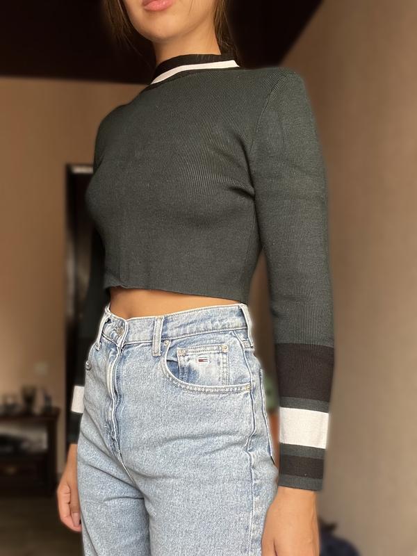 Дуже мʼякий та приємний до тіла светр Вкорочений, з горловиною Дуже приємного темно-смарагдового кольору, але, На жаль, камера не передає цього відтінку Розмір S