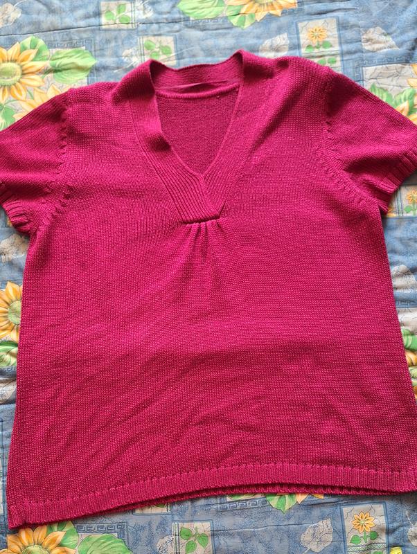 светр із коротким рукавом або можна, як жилет носити, щільне в'язання, є плічка, малинового кольору