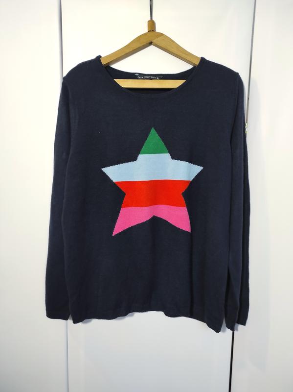 Світрик, джемпер склад акрил, стан відмінний, розмір вказано uk 18,, орієнтуйтесь на виміри пог 54 ширина по плечах 41 дл рукава 60 ширина внизу 53+ дл виробу 63