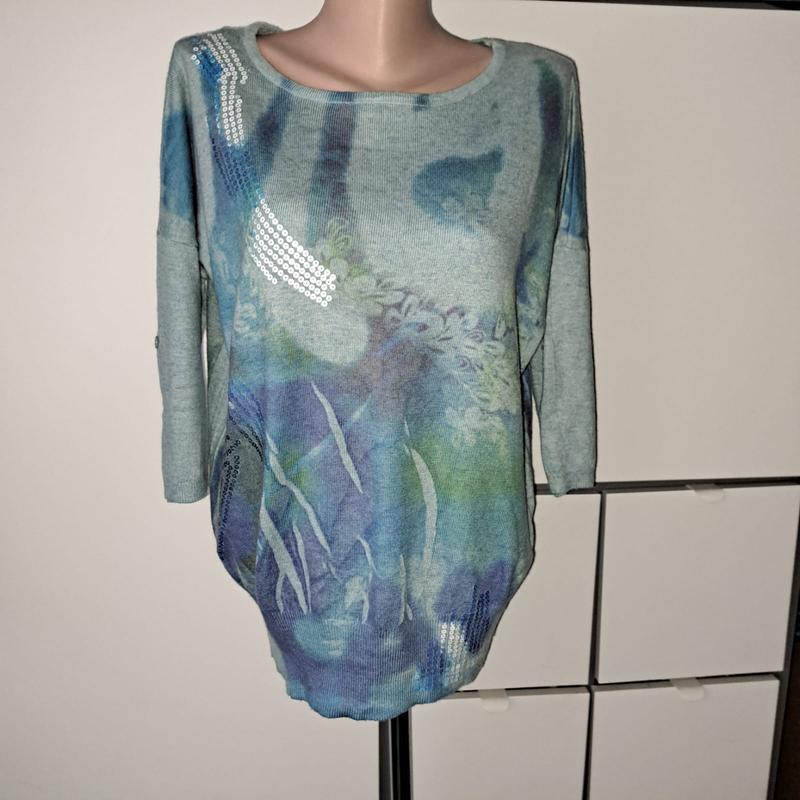 Красивий светр р-р 46європейський пог-58 пос(резинка)-43/55 довжина-71 рукав(від горловини)-54 стан-ідеальний