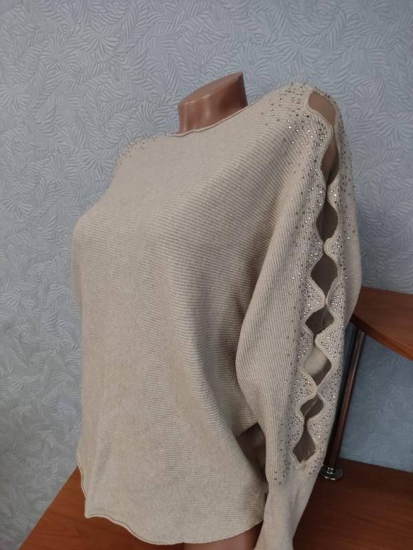 Дуже гарна кофтинка в рубчик. Рукава декоровані сіткою з камінням. Підійде на розмір S,M,L.