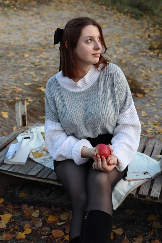 Продам вʼязаний светр у ідеальному стані 🌸 Він оверсайз, підійде до 3хл. Я ношу л/хл, місця залишається ще багато)