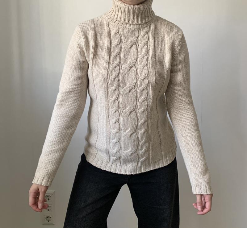 Светр бежевого кольору Розмір Л У складі 50% вовна, 50% акрил Не колеться Довжина 59 см, довжина рукава 66 см, напівобхват грудей 50 см Стан ідеальний Вдягнуто на розмір Л, зріст 167
