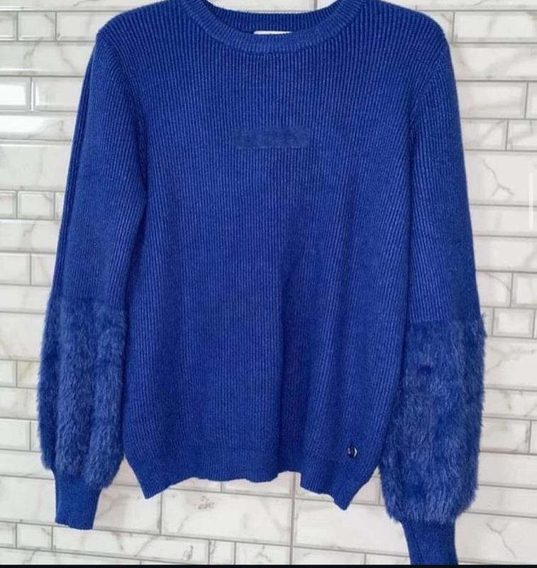 Класний светрик насиченого кольору💙 Рукав 🔥дуже стильно виглядає Бірки на фото➡️ Довжина 62 Рукав 65, на манжеті Плечі 42 Біцепс 16+ Пог 52/65 Понизу 45/75 Тянеться дуже легко