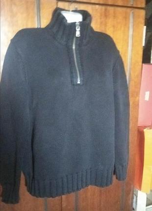 продам черный свитер из 100% коттона,тяжелый по весу, теплый,крутая большая молния спереди,с логотипом фирмы, фирма Marc O'Polo, состояние отличное,без никаких нюансов, размер указан L, подойдет и женщинам и мужчинам на 48-50 укр размер,замеры:пог55 см + тянется до 61 см, пот 53 см + тянется до 60 см поб 52 см ++ тянется до 60 см, полуобтем по плечам от шва до шва 47 см, длина рукава от горовины стойки 79 см, внизу по рукавам и внизу свитера манжеты высокие, высотой 8 см,длина по спинке 65 см, сезон осень, весна, зима, вещь теплая