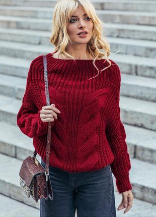 🍂Объемный джемпер крупной вязки с узором «косы». ✔Размер универсальный :44-48 Объем груди:96см длина изделия – 63 см. длина рукава (от горловины) – 69 см. 🧵Состав: 50% вовна, 50% акрил Растяжимость: сильно тянется (более 8 см) 🎨Цвет: красный 🧵Материал: Шерсть с акрилом 💳Цена 1200грн арт7110 📦Сбор заказа 1-3 дня