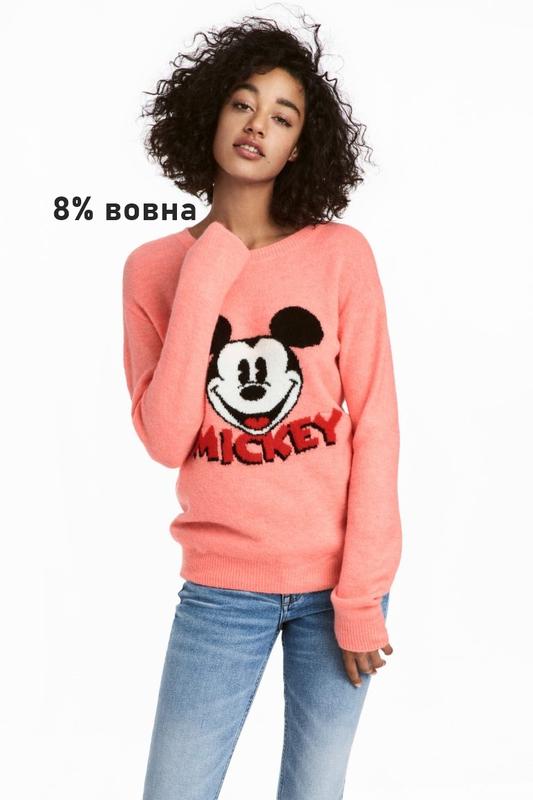 Теплий светр з Mickey Mouse. Спереду та ззаду є світліша смуга (виробничий брак). В носінні не помітно. Інших недоліків немає. Напівобхват грудей 51 см. Напівобхват талії 49 см. Плечі 46 см. Рукав 57 см. Довжина 54 см. Склад: 60% акрил, 28% поліамід, 8% шерсть, 4% еластан. --- 100% передплата на картку. Або оформлюйте безпечну оплату. Післяплатою не відсилаю. --- Увага! Перед офомленням замовлення напишіть мені повідомлення. Я можу бути у відрядженні, а за відхилені замовлення знижується рейтинг. Відправка в кінці робочого дня (7-8 вечора). Відповідно номер посилки ви отримаєте не раніше.