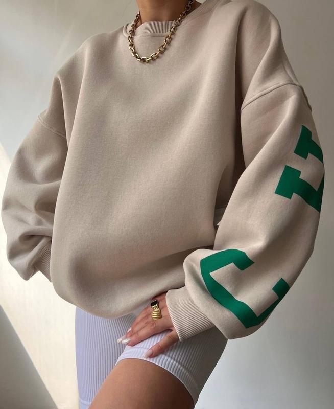 Батник Код 040 Ткань: Трехните на флисе Размер: 42-46 универсал Цвета: зеленый, бежевый Wow🤩 Трендовый батник с надписями на спине. Тепленький на флисе. Качественная накатка, модные цвета.
