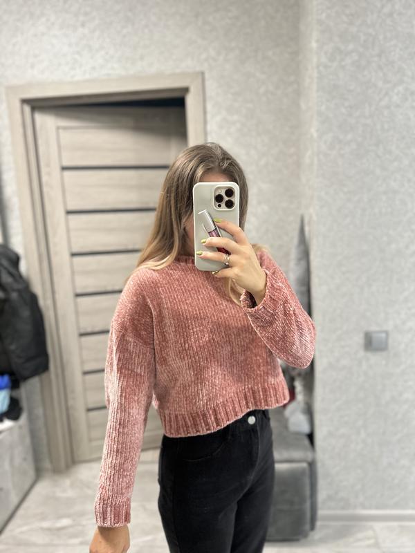Светр жіночий велюровий. Розмір S. Мої параметри 88-65-94. Зріст 165