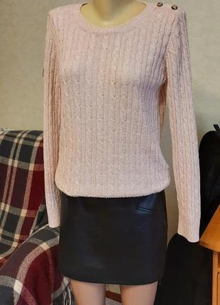 В'язаний жіночий светр брудно-рожевого кольору. Приємна до тіла тканина. Стан хороший. Не розтягнута, без зацепок. Розмір S/M Ширина плечей 36 см Напівобхват грудей 46 см Довжина рукава 65 см Довжина 63 см.