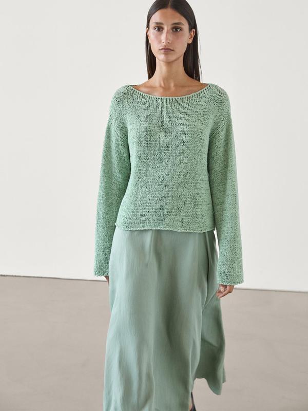 Ціна 2880 Светр з бавовняного трикотажу. Горловина човник. Довгі рукави. Оздоблення з плямистим ефектом 5614/608