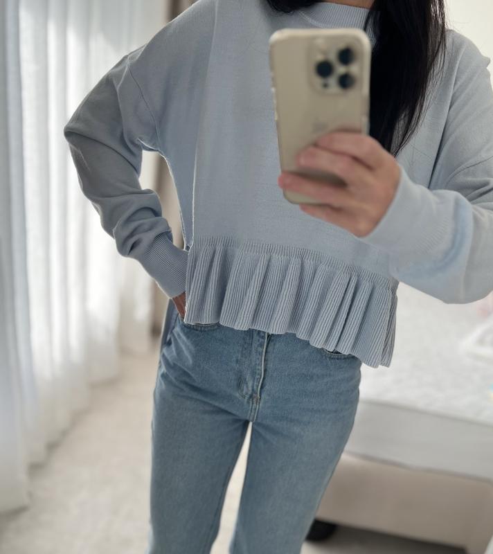 В наличии женский свитер с баской удлиненный one size м/l голубой на длинном рукаве трикот...