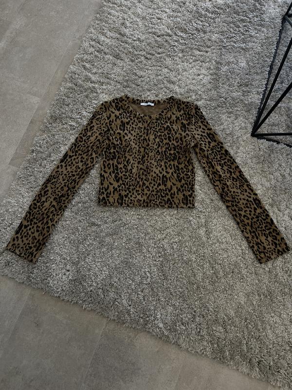 короткий светр з леопардовим принтом. Щільно прилягає до тіла, злегка розширені рукава на зап’ястях Стан новий