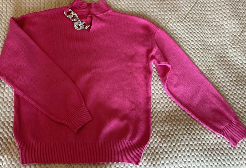 Яркая качественная приятная к телу кофточка свободного фасона жизнерадостного цвета фуксия