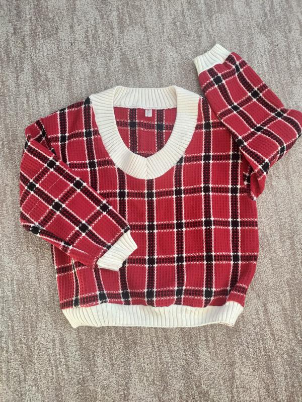 жіночий светрик у клітинку, оверсайз, але кому треба є заміри на фото, цікавий дизайн