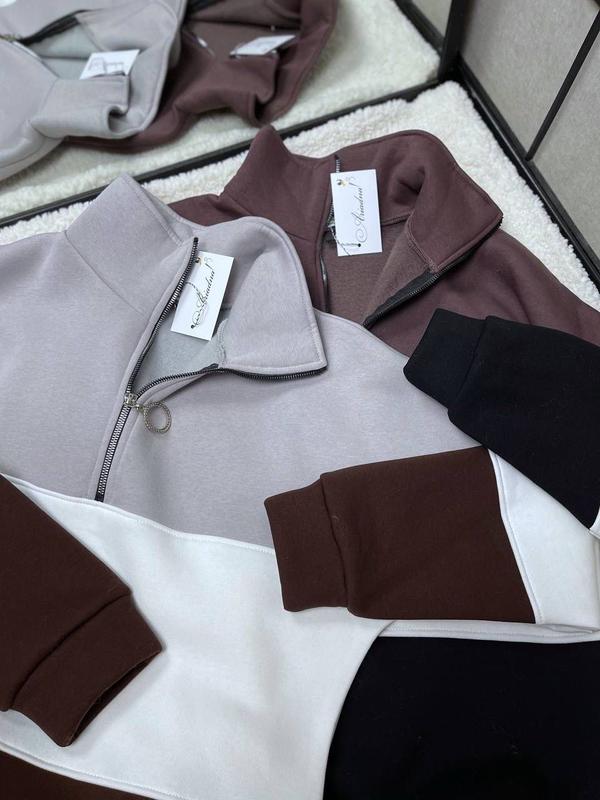НОВИНКА ❤️❤️❤️ Модна комбінована кофта на змійці, яка чудово доповнить ваш модний спосіб життя. Виглядає дуже стильно ❤️ ЄМодель: 1549 Розміри: (42-44), (46-48) Тканина: трьохнитка на флісі Кольори: в асортименті Заміри: 💛Обхват грудей (42-44)-120см,(46-48)-128см 💛Обхват талії (42-44)-100см,(46-48)-110см 💛Рукав (42-44)-72см,(46-48)-75 см 💛Довжина (42-44)-73см,(46-48)-78 см