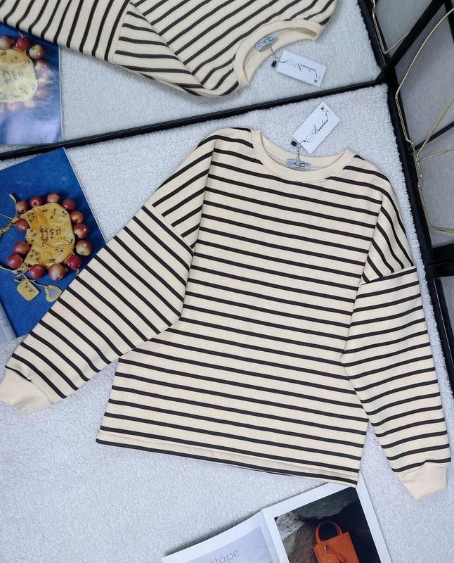 Спортивний подовжений батник у смужку. Вільного крою-оверсайз. На рукавах - манжети, горловина - з круглим вирізом . Приємний до тіла матеріал та якісне пошиття. Розміри: 42-44, 46-48 Тканина: Турецька трьохнитка пєн'є на флісі Кольори: чорна, рожева, блакитна, бордова, синя смужки Виміри: 💛Обхват грудей (42-44)-114см,(46-48)-126см 💛Обхват талії (42-44)-102см,(46-48)-116см 💛Довжина (42-44)-63см,(46-48)-66см 💛Рукав (42-44)-73см,(46-48)-74см