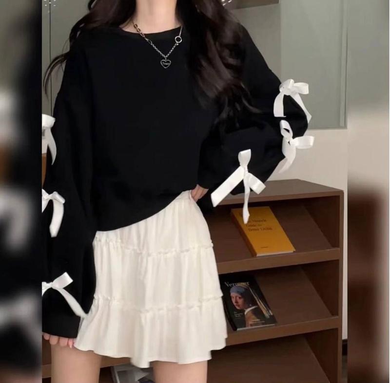 🥀Новинка🥀 Батник 🎀 Код 193СИН1530 Тканина: Трьохнить на флісі Розмір: 42-46 універсал Кольори: чорний, сірий 💵Ціна 650 грн 🔥 Wow🤩 Трендовий батник з бантиками на рукавах. Тепленький на флісі. В вільному оверсайз стилі.