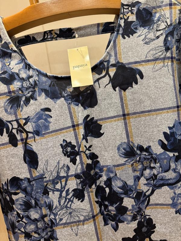 В наявності гарна кофточка фірми PAPAYA. Розмір вказаний 10. Склад: 95% поліестеру та 5% еластану, тканина м'яка та приємна до тіла, добре тягнеться. НОГ-52+щі тягнеться, довжина-66, довжина рукава від коміра-48, ширина по низу-52+ще тягнеться.