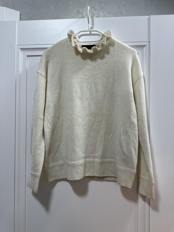 Свитер от бренда M&S, в составе есть шерсть, мелкой вязки, с очень нежным воротничком, хорошо будет комбинировать с рубашкой, состояние идеальный, цвет молочный, но с теплым оттенком, размер S, подойдет также на xs