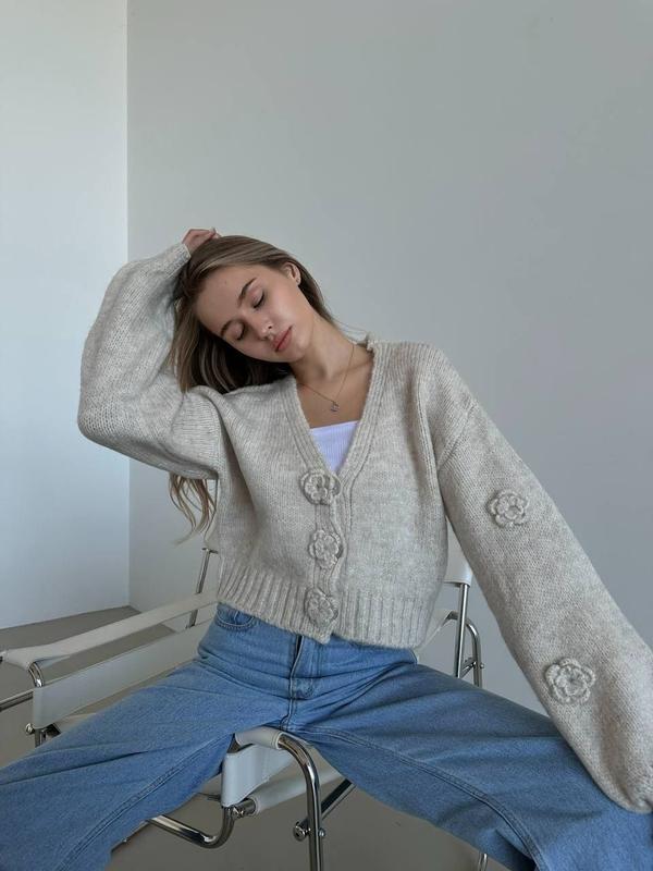 Вільний кардиган з трояндами Модель 7010 • Розмір універсальний • Довжина см • ОГ 110 см