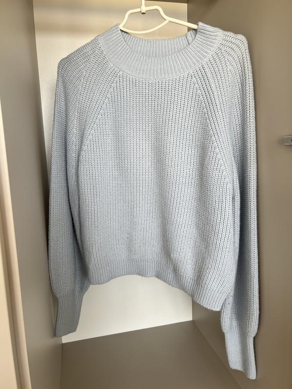 Финальная скидка!!️ Теплый свитер в нежно голубом цвете. Размер М (может быть на Л), ОГ 118 см Состояние очень хорошее. Имеет микрозагрязнение (на втором фото), просто стирать