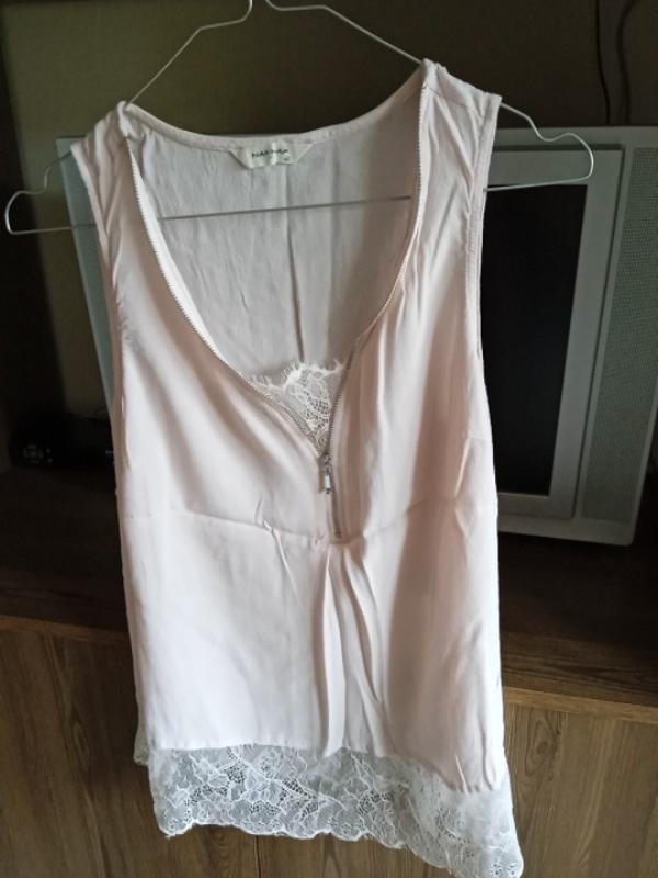 Кофтинка ніжно пудрового кольору з мереживом на s.В новому стані. Пог 41 см Довжина 58 см