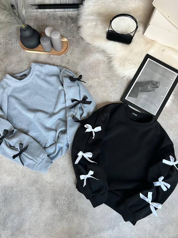 🥀Новинка🥀 ФОТО Реал⚠️ Батник 🎀 Код 193 rb Ткань: Трехнит на флисе Размер: 42-46 универсал Цвета: черный, серый 💵Цена 680 грн 🔥 Wow🤩 Трендовый батник с бантиками на рукавах. Тепленький на флисе. В свободном оверсайз стиле.