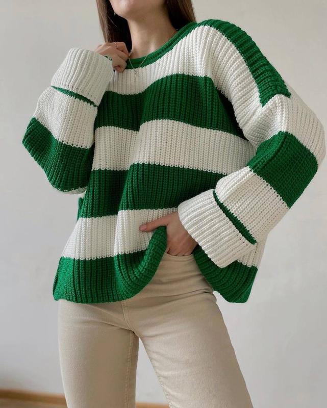 Вязаный свитер в полоску. Идеальный вариант на каждый день ♡Ткань: турецкая вязка ♡Размерный ряд: one size 42 - 48 ♡Цвет: зеленый Price: 550 uan Производство: Турция🇹🇷 Для дополнительных фотографий и заказов пишите в Директ💌 Официально ФОП Можно замовити через shafa Есть наляжной платеж по подписке 100 грн✨️ #одеяла #женская одежда #женский наряд украины