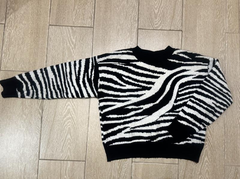 Теплий светр в принті зебра в ідеальному стані . Розмір 44-46. Заміри : Рукав- 43 Довжина -49,5 Плечі- 50