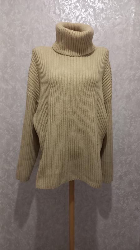 состояние очень хорошее, дефектов нет, есть чуточку катышков. Ткань толстая, теплая, в составе есть шерсть. Размер L-XL длина спереди 65 см длина сзади 75 см пог 63 см Плечи 62 см Рукав 50 см высота горловины 24 см
