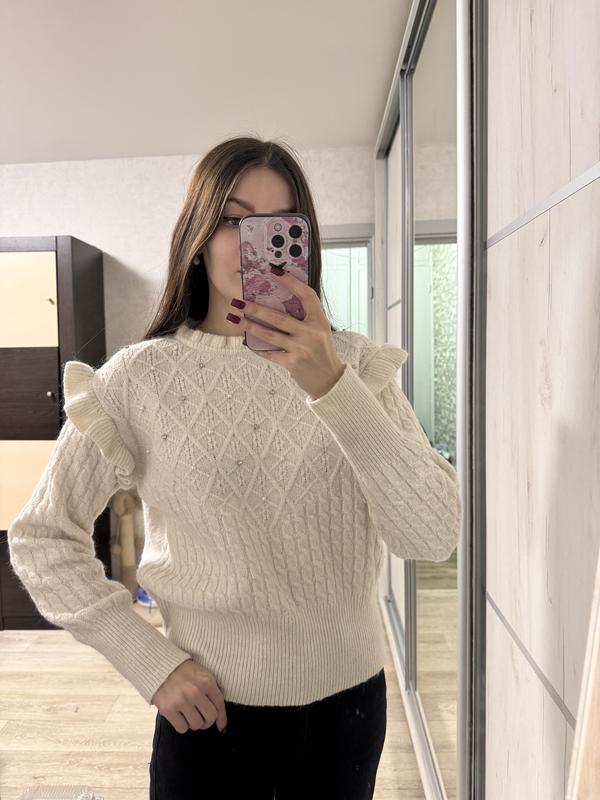 Довжина 57 см, пог 52 см, рукав від плеча 60 см. По бірці розмір С, колір молочний як на першому фото. В складі є шерсть і альпака