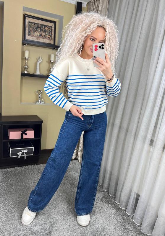🏹НОВИНКА 🏹 Светр у смужку Материал - акрил (тонкая машинная вязка) 3 кольори Размер Универсал 42-46 Ширина 52-60 Длина 56 Рукав от горла 73 новая Цена 495 грн код1955 (шиш)