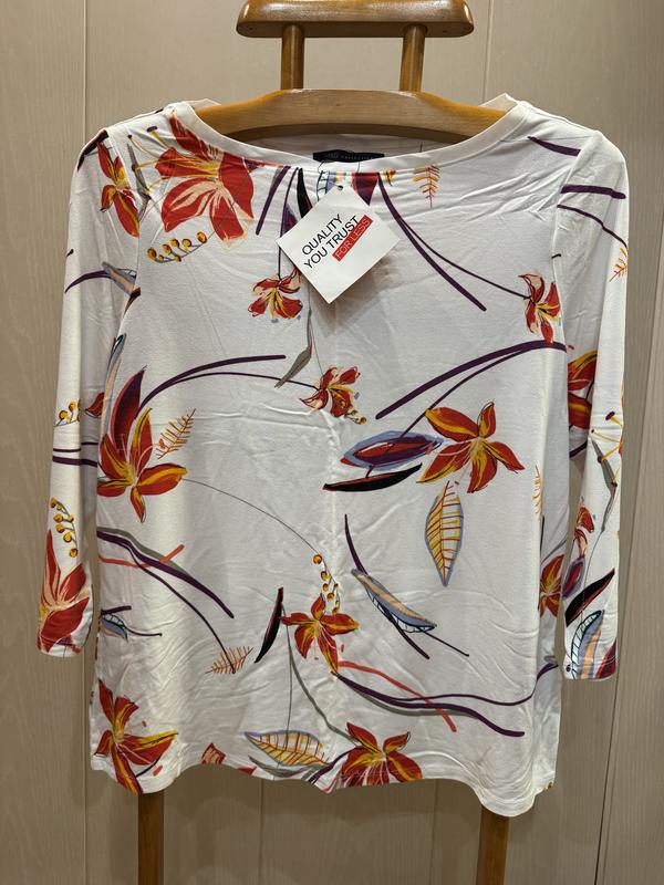 В наличии красивая кофточка фирмы M&S. Размер указан 16..хорошобудет и на 14. Состав: 95% вискоза и 5% эластана...ткань очень мягкая и приятная к телу, хорошо тянется. ПОГ-55+ещё хорошо тянется до 60, длина-62, плечи-41, длина рукава-46, ширина по низу-55+ещё тянется.
