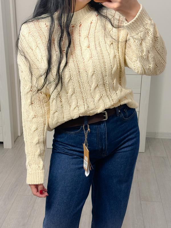 Свитер крупной вязки с а р а, размер М (можно L) Новый с сайта Состав: 58% коттон, 42% полиэстер. Замеры: Длина 63 см ПОГ 56 см Спущенная линия плеч.