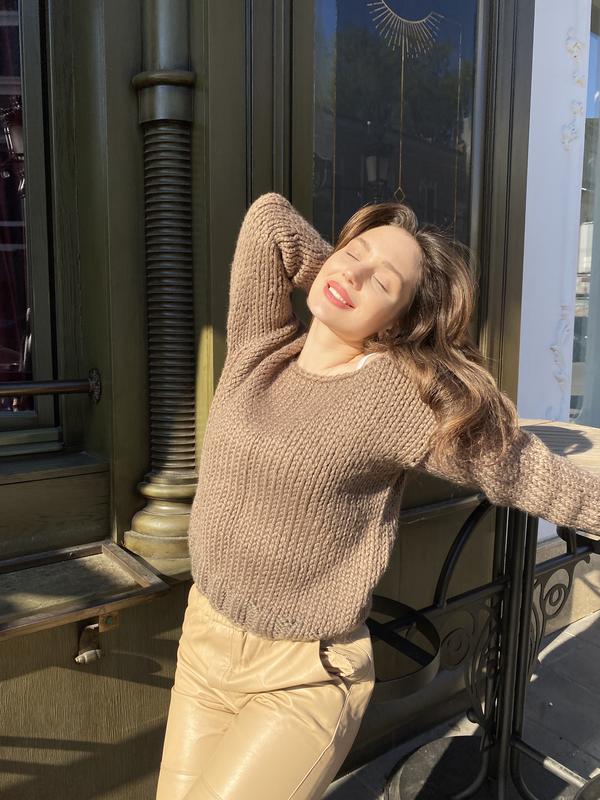 Базовий светр - теплий і затишний. Сплетений вручну. Класичний, позачасовий дизайн, нічого зайвого, ви з легкістю зможете вписати його в свій гардероб. Фасон oversize допоможе залишатися завжди в розслабленому стані, відчувати комфорт і невимушеність.